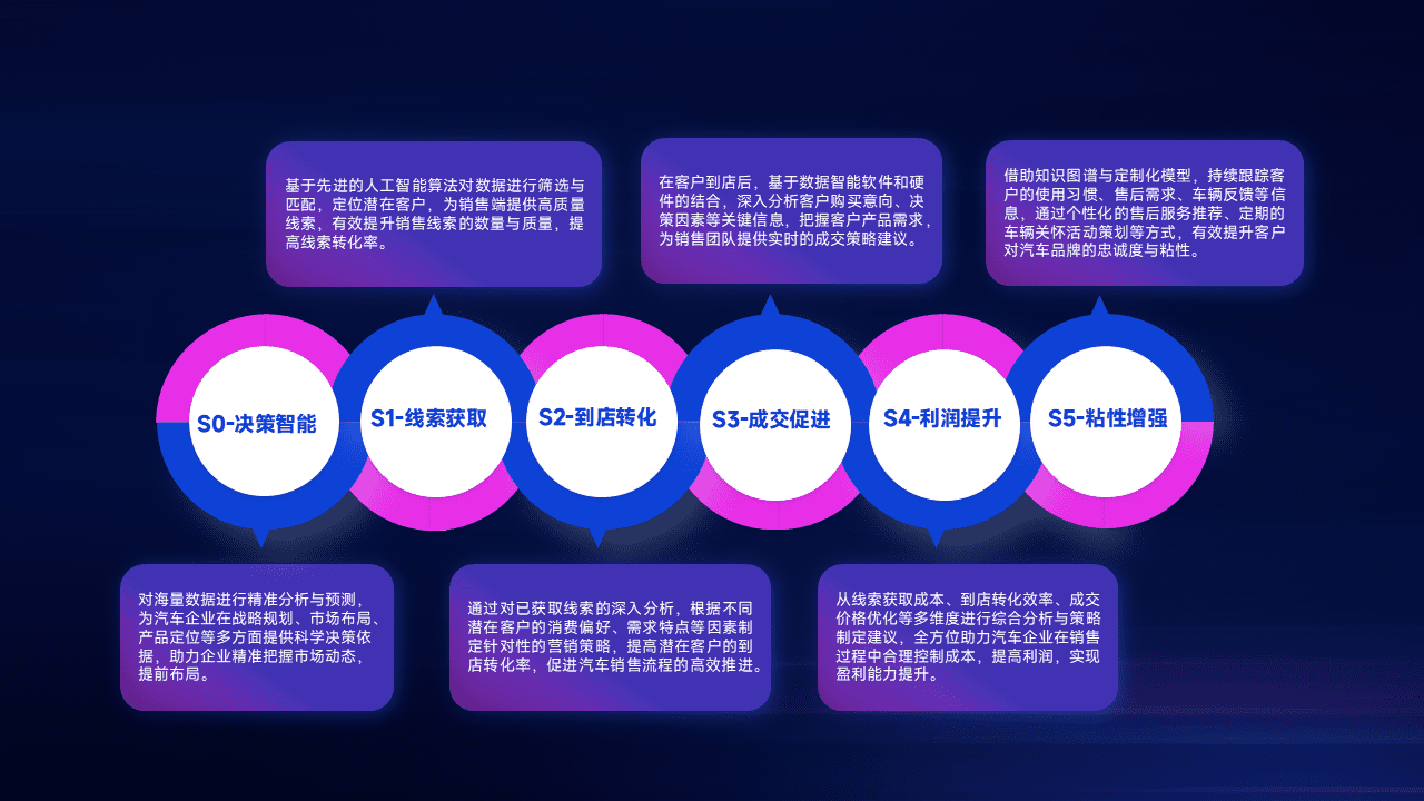 通过拓宽潜在客户来源、、优化线索分配并提高到店转化率,,,,以增强销售效率。。同时,,,利用线索数据不断优化分析模型,,,,有效提升转化率,,扩大营销影响力。。。